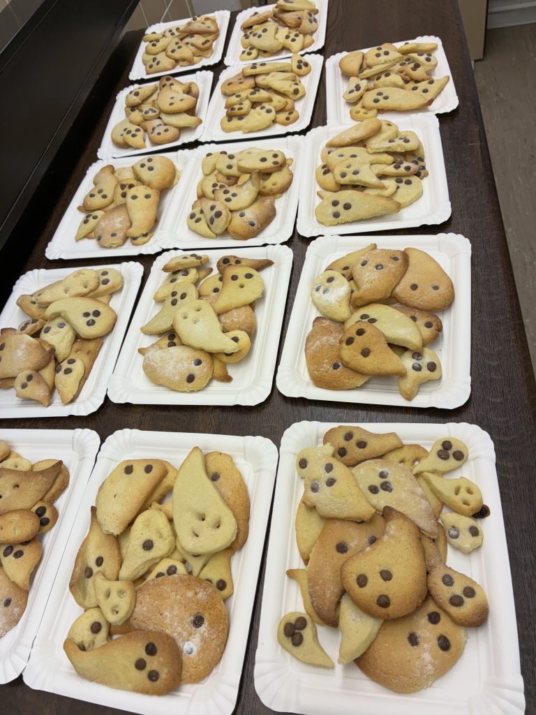 Die Ganztagskinder haben den letzten Nachmittag im Oktober genutzt, um gemeinsam Gespenster-Kekse in der Schulküche zu backen.