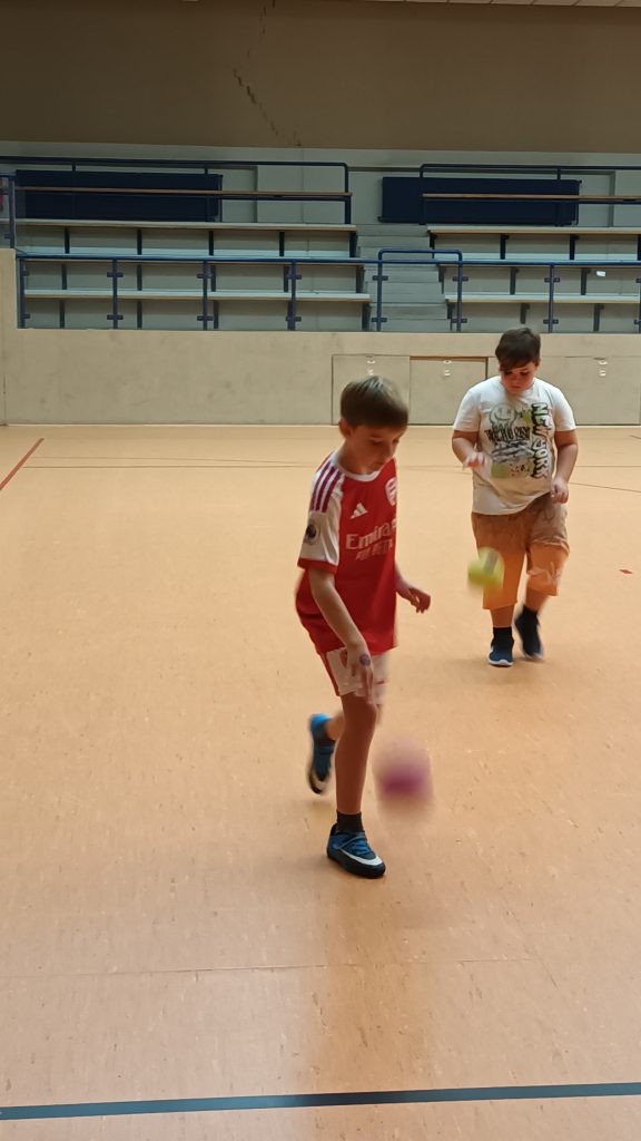 Schwieriger waren die ersten Koordinationsübungen, die alle Kinder eifrig und recht geschickt ausprobierten.