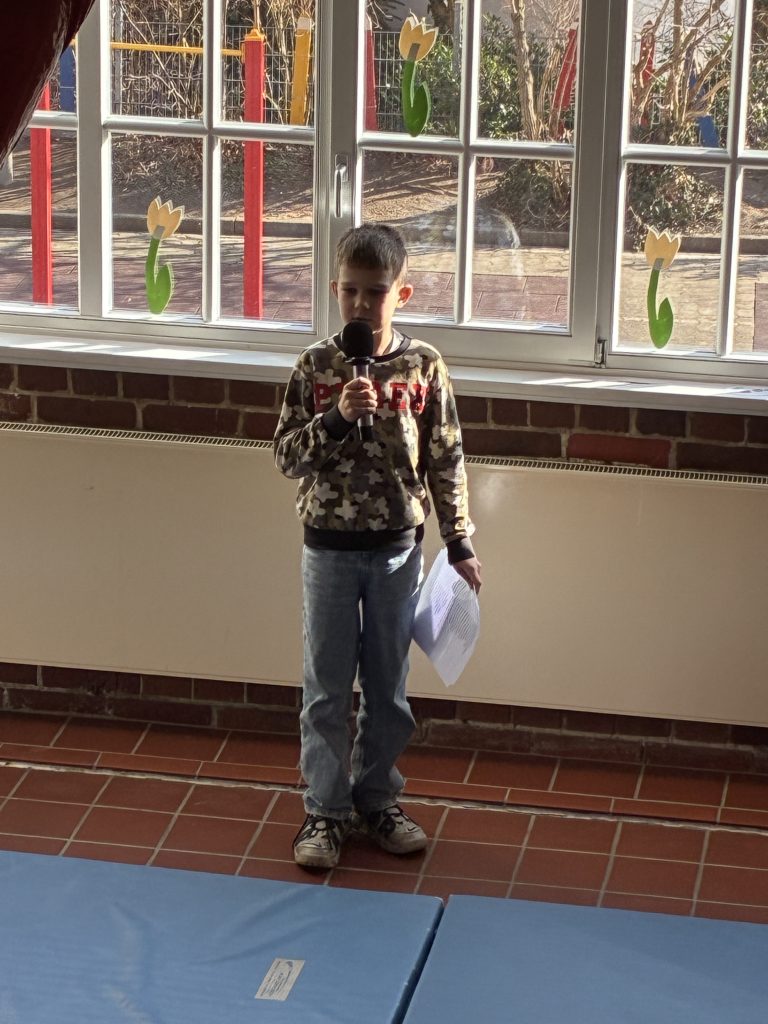 Am Freitag, 27.02.26 haben wir uns das erste Mal zu einem Talentetag mit allen Klassen getroffen. In den Wochen zuvor hatten die Klassenlehrerinnen gemeinsam mit den Kindern überlegt, was ein Talent ist und wer sich vorstellen kann, sein Talent vor der gesamten Schulgemeinschaft zu zeigen.Herausgekommen ist eine tolle Feierstunde, in der sehr vielfältige Beiträge präsentiert wurden. Die Zuschauer und Zuschauerinnen waren sehr begeistert und haben alle Talente fröhlich beklatscht.